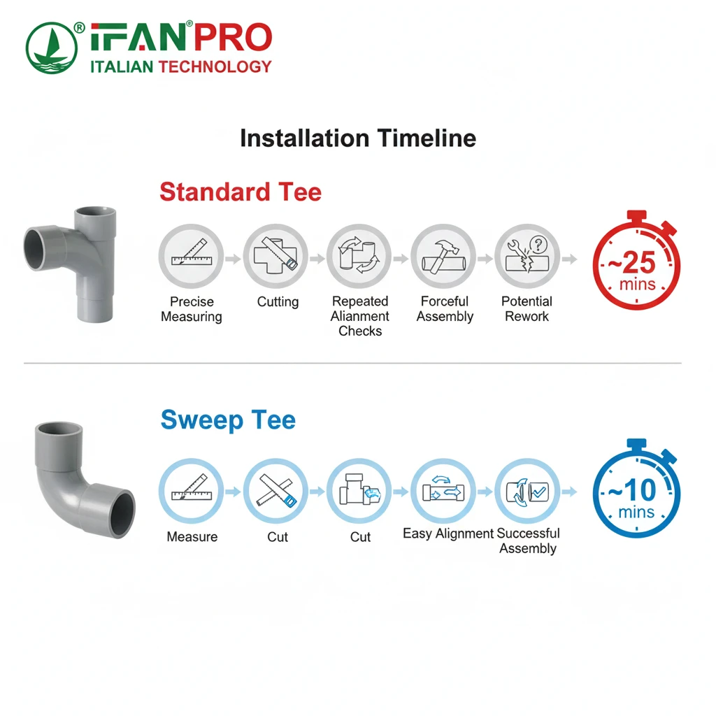 I once watched an installer struggle for an hour to align pipes with a standard tee. When we switched to a sweep tee on the next job, the process was smooth and took half the time. That hands-on difference is real.