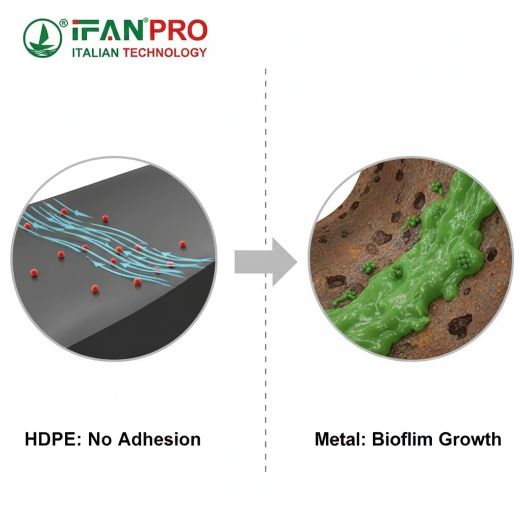 | Surface Smoothness | Very High (Inherent) | Low (Degrades over time) | Smooth HDPE prevents attachment. |