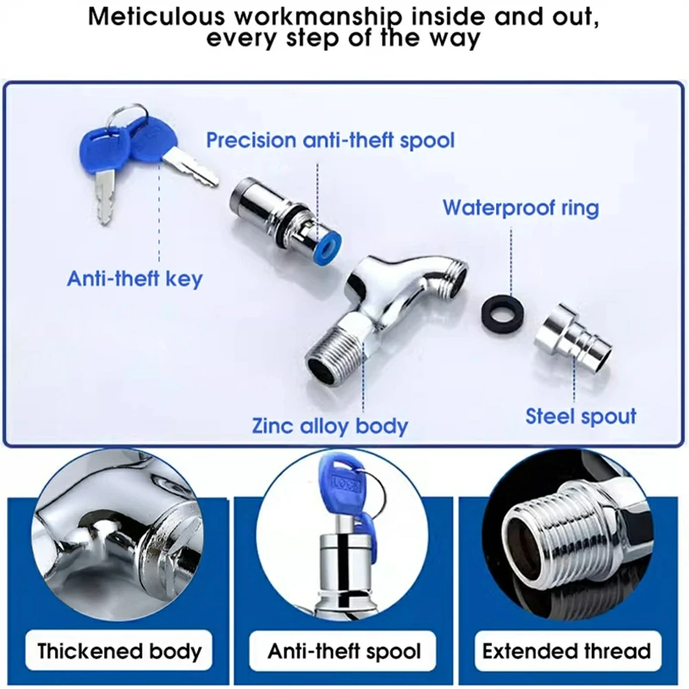 The tap features standardized threading on the inlet, ensuring a seamless and leak – free connection to 1/2″ or 3/4″ plumbing pipes. This helps to prevent water wastage and potential water damage to surrounding areas.