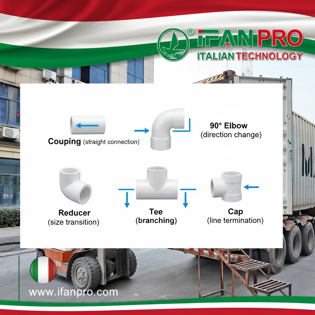 PVC fittings fall into several categories based on their function. Knowing these categories helps you select the right fitting for each job.