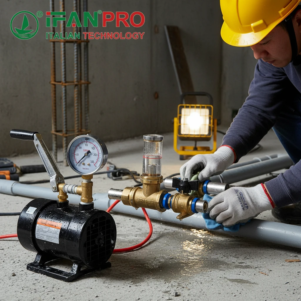 Attach a reliable pressure gauge and pump. A hand pump works well for residential systems. For larger commercial jobs, consider a powered test pump. Raise the pressure gradually to the test level.