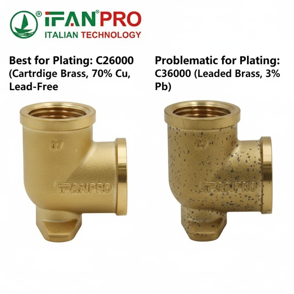 • Leaded Brasses (e.g., C36000): These are easy to machine but problematic for plating. Lead particles in the alloy do not plate. They can cause “skip plating” (bare spots) or lead to blistering as the plating tries to cover an inconsistent surface. Most high-quality platers will refuse to plate leaded brass for decorative chrome.