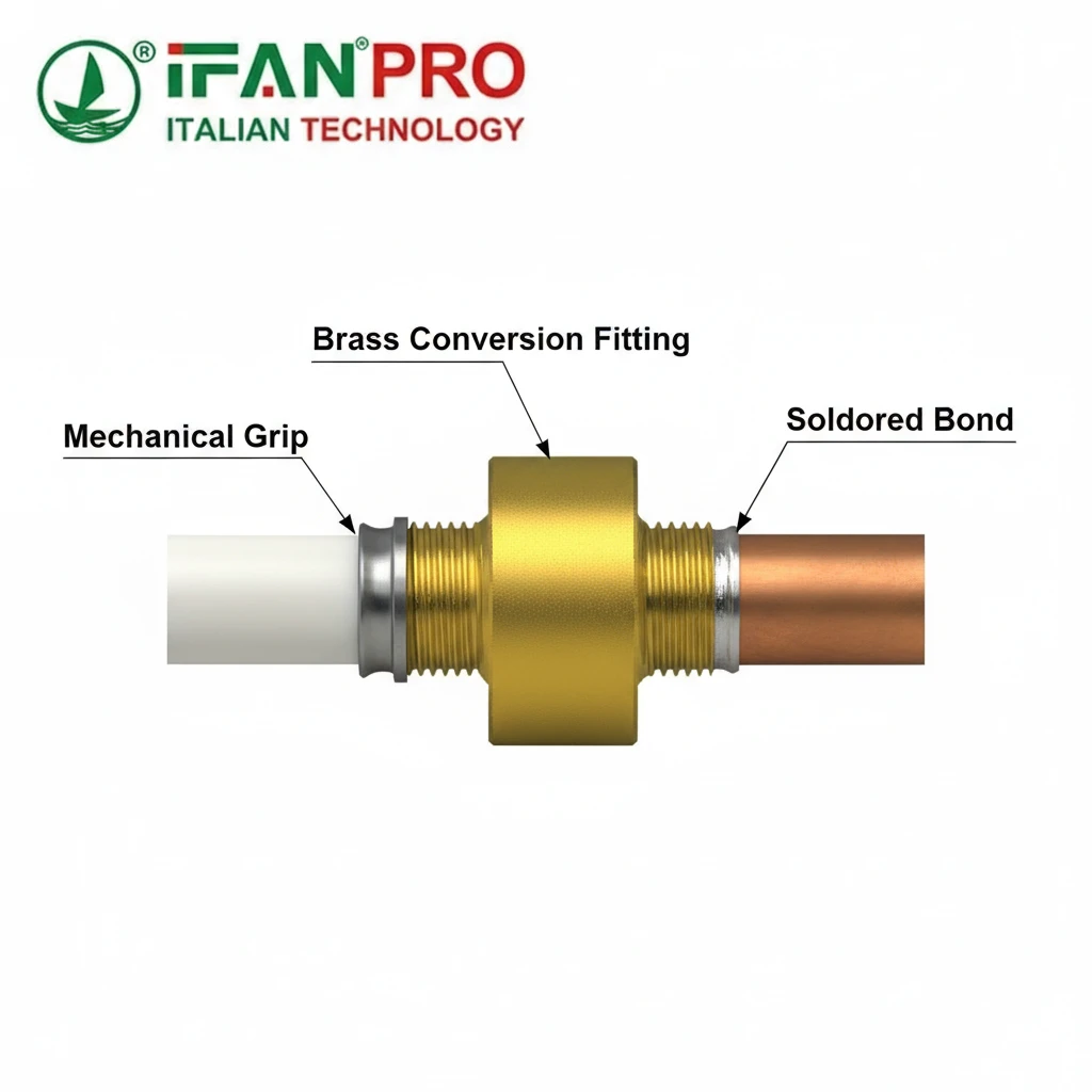 Brass conversion fittings ensure reliable joints by using a material compatible with both metals and plastics, preventing galvanic corrosion. Their design separates the two connection methods (mechanical for PEX, soldered for copper), allowing each to be done correctly. Proper installation following codes seals the joint permanently.