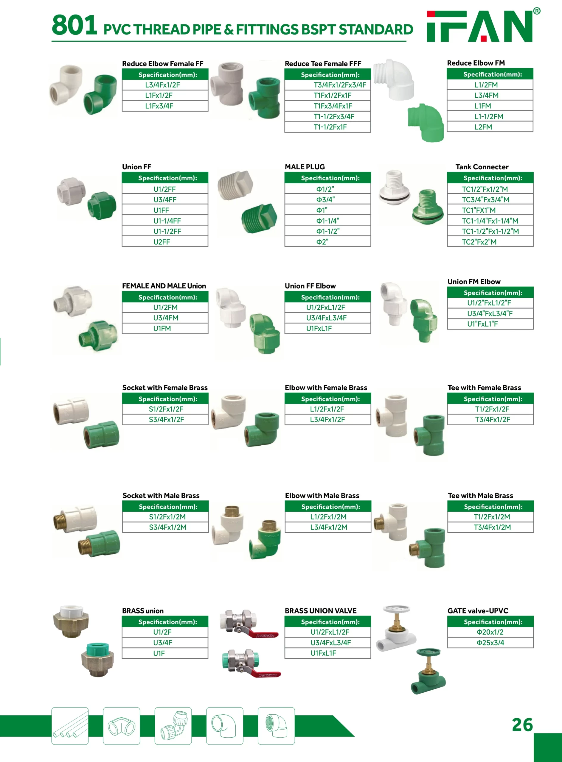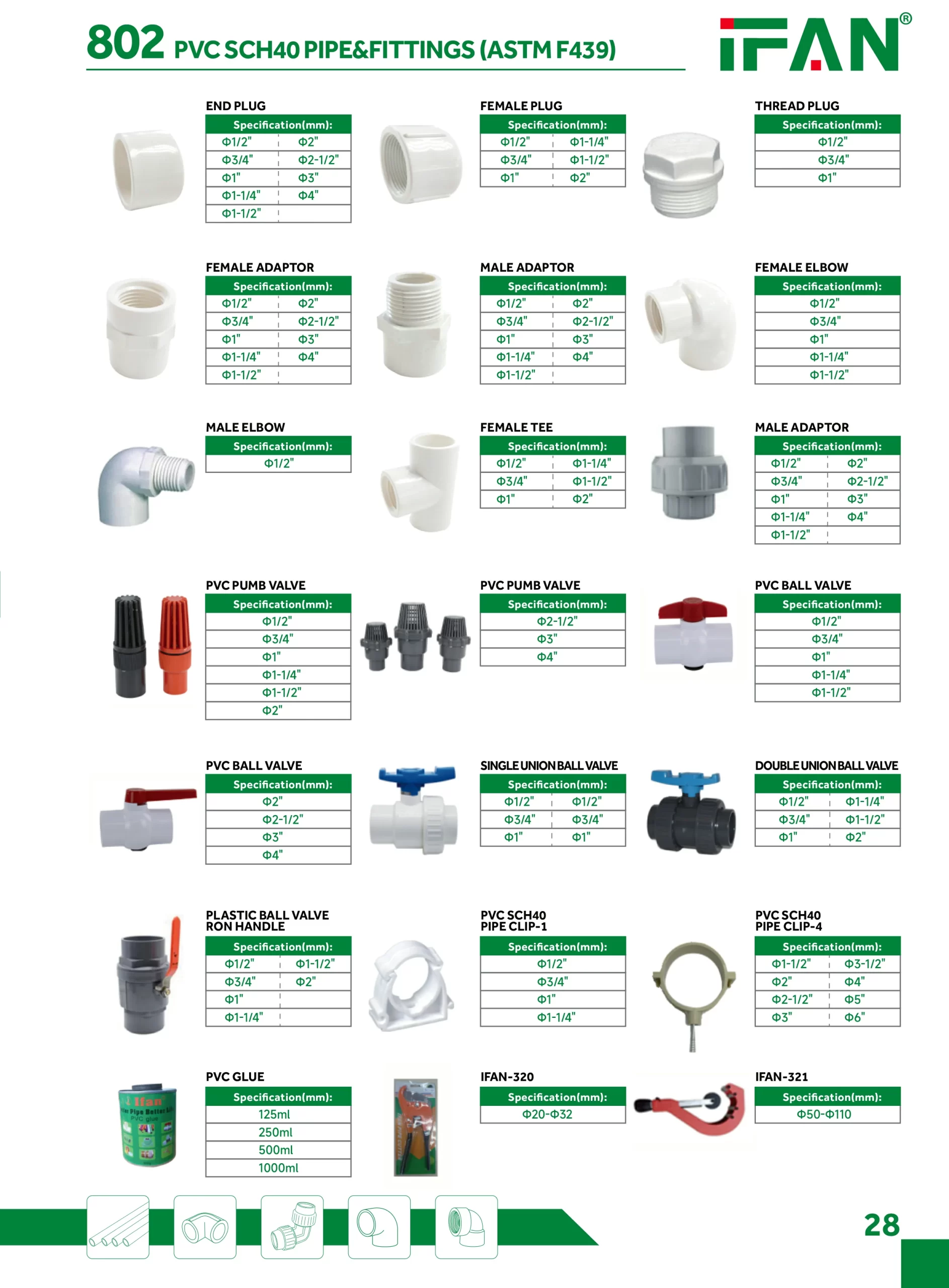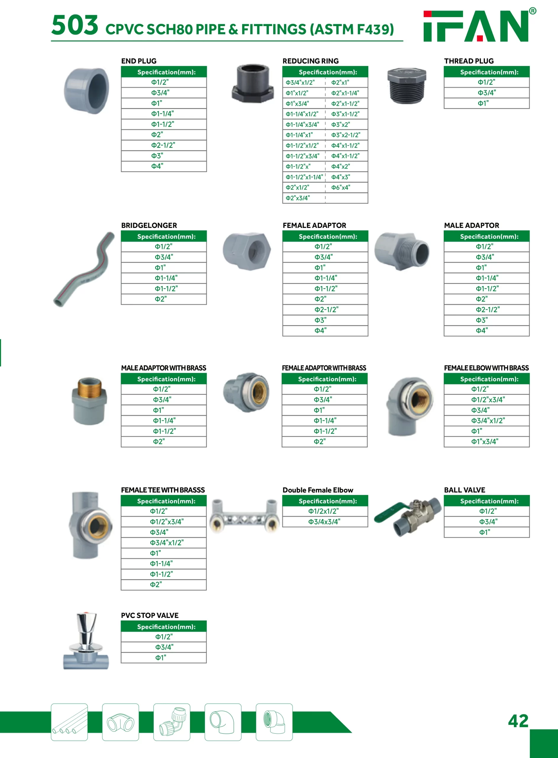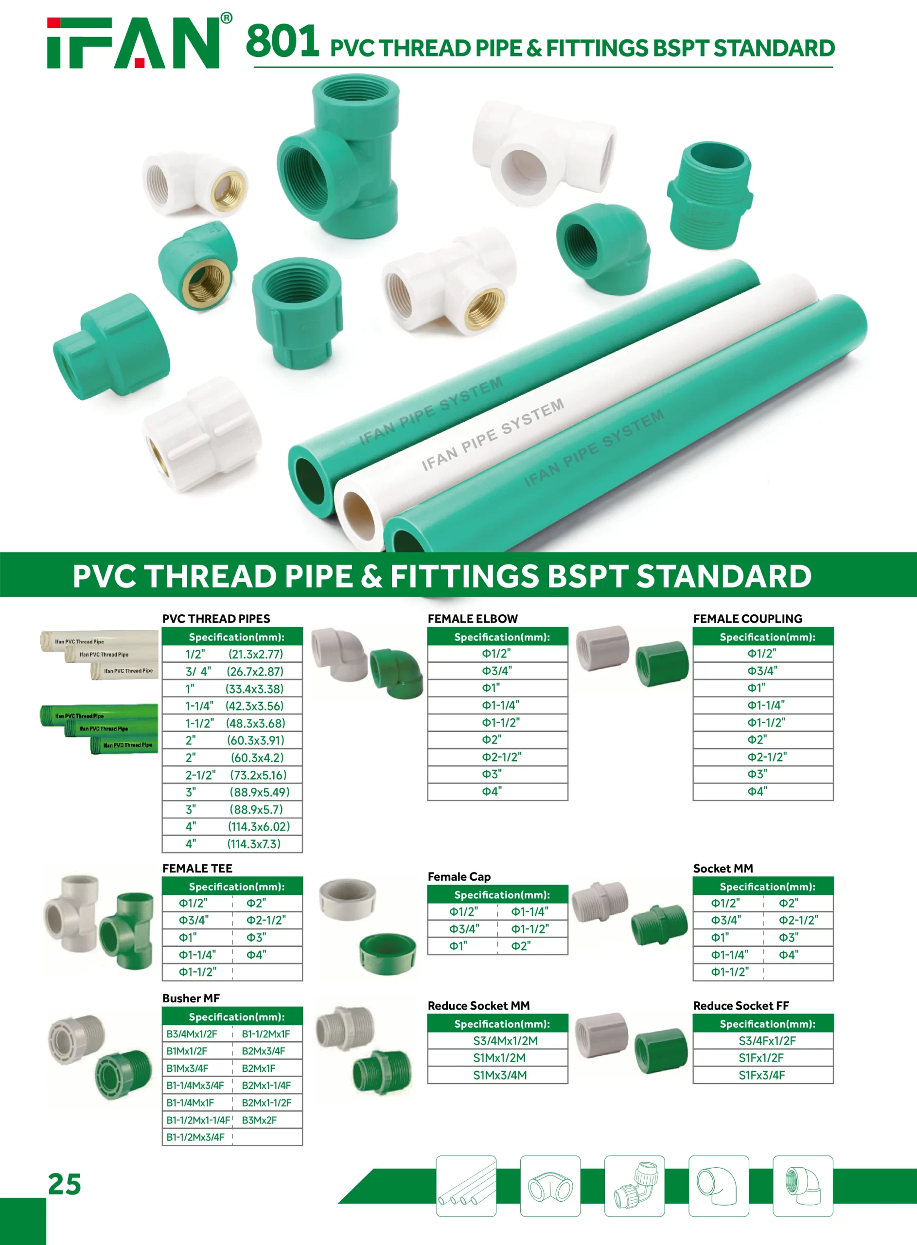 - Diverse Sizing: Covers pipe diameters (20–110mm) and thread sizes (1/2″–4″), 适配 diverse project requirements.