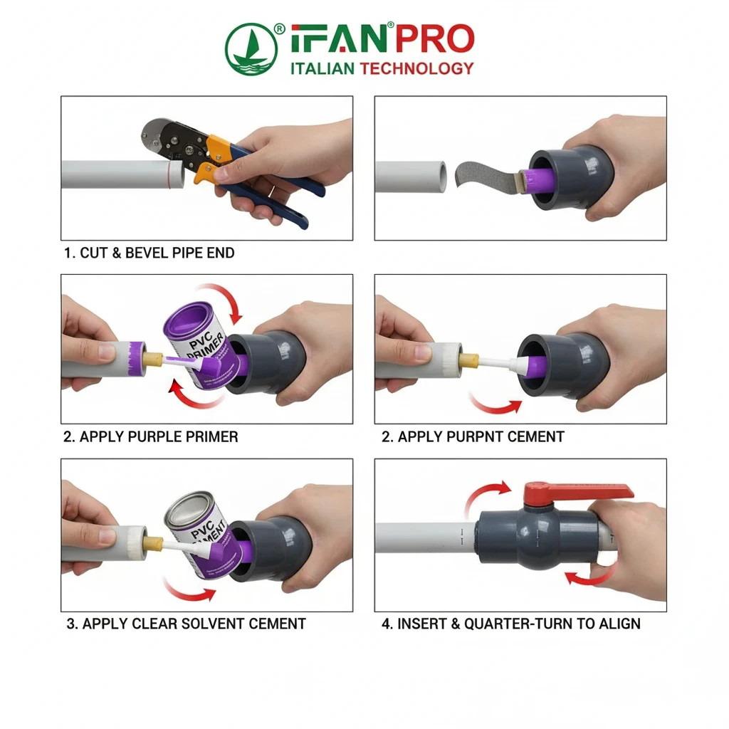 To ensure a proper connection, follow these key steps: dry-fit and mark the alignment, bevel and clean the pipe end, apply primer and cement evenly, make the final connection with a firm quarter-turn, and immediately hold it steady. Crucially, you must install permanent, independent supports before the solvent cement sets to prevent stress on the new joints.