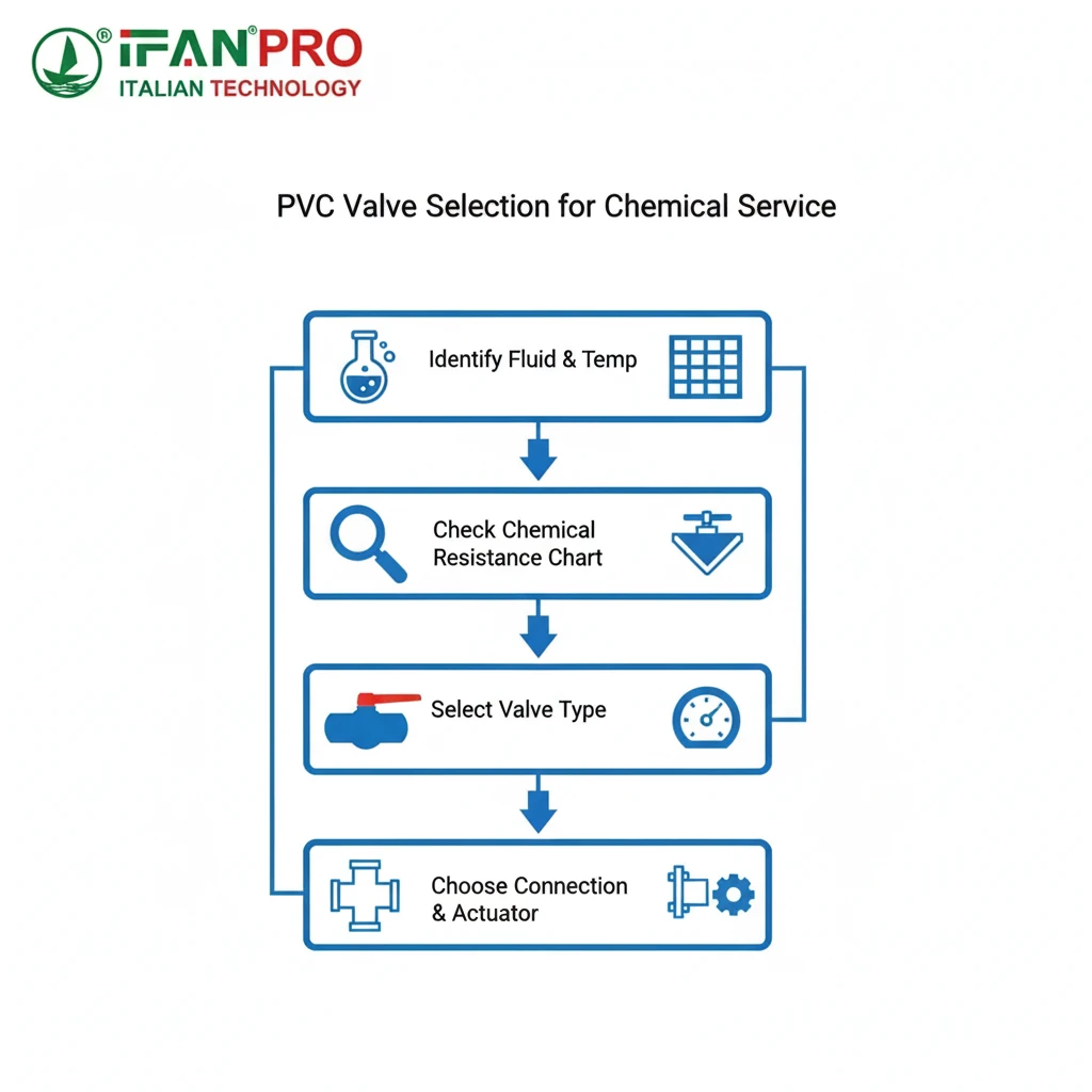 You select PVC valves by following a systematic process: First, identify the full chemical composition, concentration, and temperature of the fluid. Second, consult a detailed chemical resistance guide. Third, match the valve type (ball, diaphragm, check) to the process requirements for flow control, pressure, and actuation needs.