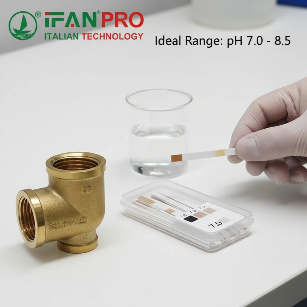 pH Level7.0 – 8.5Below 6.5 or above 9.0For low pH, consider installing a neutralizing filter. Always use DZR brass.