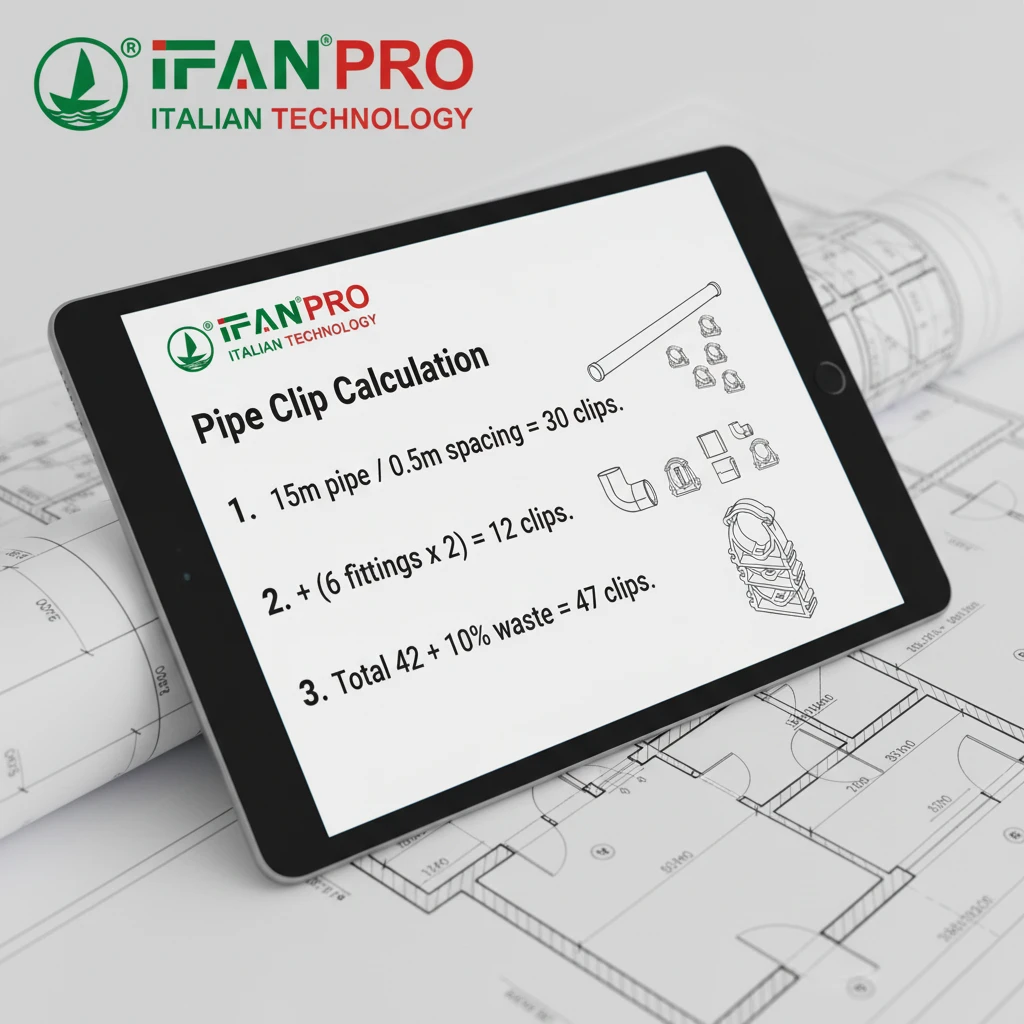 You can quickly calculate the total clips needed using this formula: (Total Pipe Length in meters / Maximum Clip Spacing in meters) + Clips for Fittings. First, determine spacing based on pipe diameter and installation type. Then, count all fittings and add one clip for each side. Finally, add a 5-10% margin for waste.