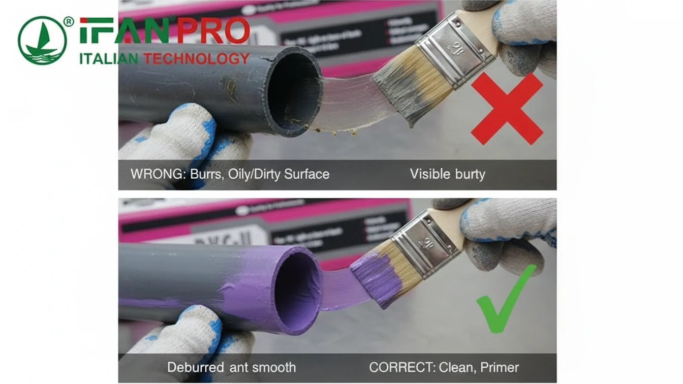 Improper surface preparation causes joints to fail because it prevents the chemical welding process. Dirt, grease, or water creates a barrier that stops the solvent from softening the PVC. A glossy, un-primed surface or a burred pipe end leads to incomplete fusion, leaving microscopic gaps that become leak paths under pressure.