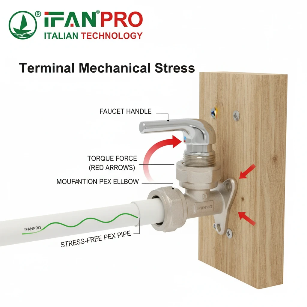 A standard PEX bend’s only function is to guide water around a corner. It is designed to handle fluid pressure, not external physical force. When it serves as the final connection point for a fixture, it faces challenges it was never meant to handle: