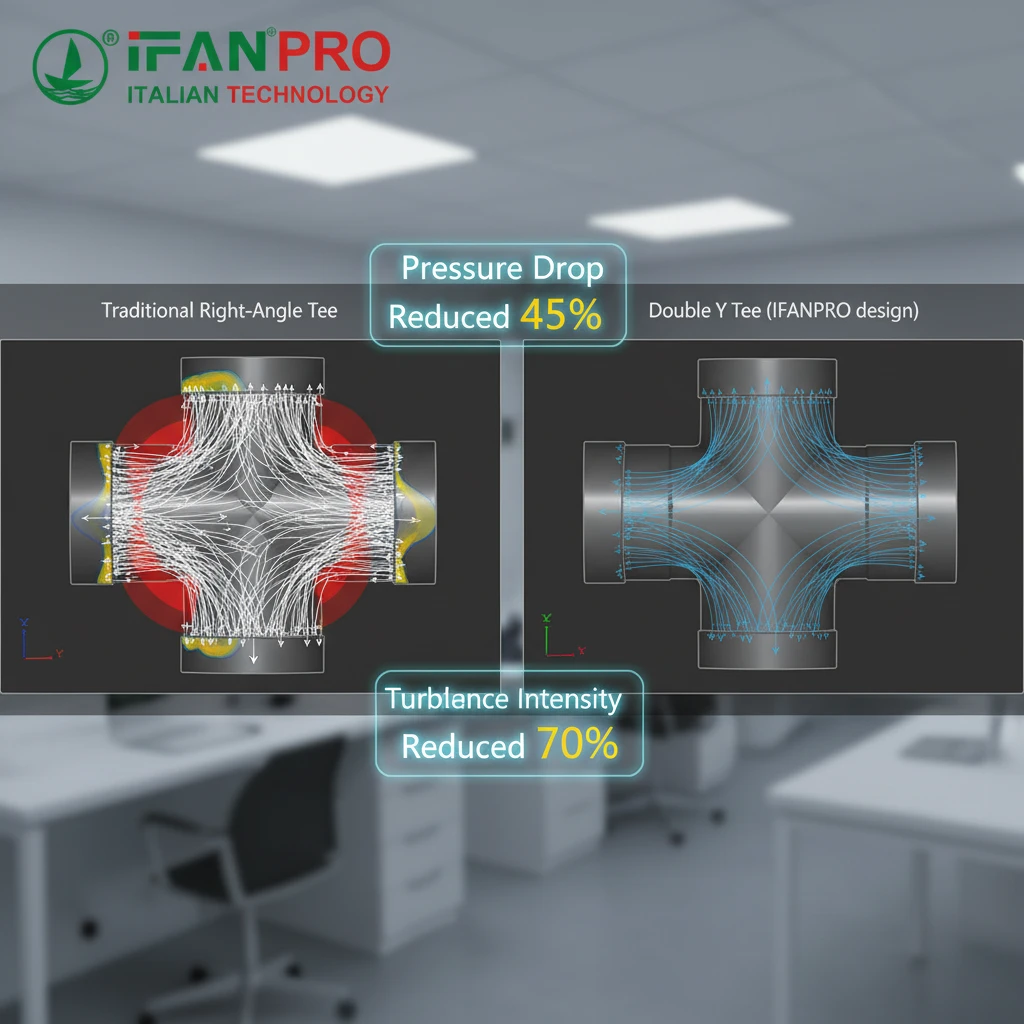 As the table shows, the Double Y Tee can reduce the pressure loss at a branch connection by 60-80% compared to a standard tee. Over dozens of fittings in a large system, this saving becomes enormous.