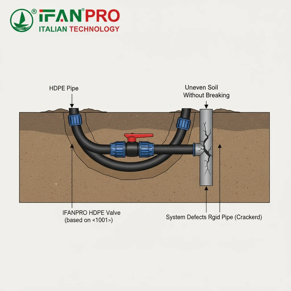- Handles Ground Settlement: A buried HDPE line with integrated valves can bend and deflect as the soil settles around it. The fused joints remain intact, and the system continues to function. A rigid system would likely crack at a joint or fitting.